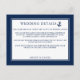 Cartão de Inserção de Detalhes do Casamento Azul de Marinho Ancorante Náutico