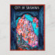 Aproximando-se da Cidade das Sombras Fantasias Arte. Uma garota com uma surra olhando para uma cidade fantástica na colina, ou para uma miragem. Visto através de um antigo portão de madeira. O texto é personalizável. Uma imagem tarot não para o contar da sorte, mas para trazer mais direção (ou surpresa) para alguém, para pensar, entender, aprender, para se perguntar. Por Alexandra Cook aka Linandara