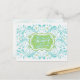 Postal Cartão de memória floral verde azul para a noiva