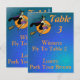 Cartões de Mesa de bruxa de Halloween por Artinspirou. Altere o texto para ajustado das necessidades do seu próprio partido. Esta placa vem na mesa 1, 2 e 3. Se você tiver mais de três mesas, edite uma ou mais placas para usar no mesa 4,5,6 etc. Design apresenta uma bruxa verde, segurando uma bolsa e voando para seu evento especial. Procure um convite correspondente em www.zazzle.com/artinspired*.