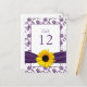 O número da mesa neste cartão de número de mesa de damasco girassol violeta roxo e branco para casamento ou ocasião especial é totalmente personalizável. Para alterar o número da mesa, use a opção personalizar. Para estes, você deve alterar o número da mesa, alterar a quantidade para 1, e depois adicioná-lo ao seu carrinho e repetir o processo para todos os cartões de mesa que você precisa. Para alterações mais extensas no cartão, incluindo alterações na fonte, cor da fonte, tamanho da fonte ou posicionamento do texto, use a opção personalizar. Este é um cartão de mesa sofisticado e elegante para um casamento ou outra ocasião especial no verão ou outono. Roxo, amarelo e branco é elegante e sofisticado.