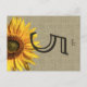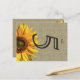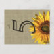 Olhar de burlap com um girassol. Personalize este cartão postal com o seu próprio texto. Faz uma mesa de excelente.