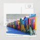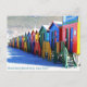 Este cartão mostra as cabanas coloridas da praia na praia perto de Cape Town - um destino superior de Muizenberg do turista na província de cabo ocidental de África do Sul.