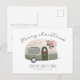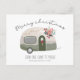 Cartão de Natal alegre do campista country retrô - apresenta uma adorável caravana vintage toda decorada para as festas de fim de ano. O cartão apresenta uma tipografia cursiva bonita, seu nome e uma saudação de Natal no verso que você pode usar ou adicionar a sua própria. O cartão postal faz parte de uma coleção.