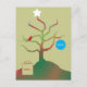 Uma árvore de Natal artística com um cardeal empoleirado, um ornamento e um pacote de solteiros.