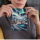 Uma pitoresca aldeia nevada iluminada por luzes vibrantes da aurora, criando uma cena mágica de mundo de inverno.