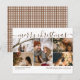 Saudações de Fim de Ano Cartão postal de Natal personalizado com cinco fotos da Ricaso - projetado com um texto de tipografia em pergaminho com modelo de fotografias na frente e um padrão xadrez marrom e branco no verso