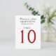 Certifique-se de que seus hóspedes vão até suas mesas com estes elegantes cartões de mesa de casamento preto e branco. Personalize com seus nomes, data do casamento e número da mesa. O tamanho é 4,25 x 5,6" e terá um acabamento brilhante. Você pode alterar a cor de fundo para uma aparência diferente. Precisará de porteiros para que as cartas fiquem na sua mesa.