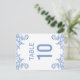 © 2018 Socialite Designs Inc. Nossos elegantes cartões de número de mesa com espirais e floreios duplos pintados em aquarela azul real suave. Um cartão de número de mesa elegante para celebração em qualquer época do ano. Este cartão faz parte da nossa coleção de eventos com floreios em aquarela azul real suave. Se precisar de ajuda para personalizar ou quiser outros produtos criados com este design, por favor não hesite em contactar a Socialite Designs.
