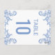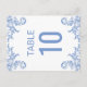 Postal Cartão de Número de Mesa com Flores em Aquarela Az