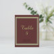 Um clássico fundo burgundy elegante acentuado por uma borda dourada neste cartão de assento de mesa. Letras douradas. Personalize alterando o número e adicionando ao carrinho, e repita para cada número.