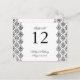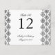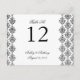 Use a opção personalizar para alterar o número da tabela nessas placas de mesa arabescas elegantes de damasco preto e branco. NOTA: É NECESSÁRIO alterar o número da tabela em cada placa e adicionar um de cada número ao carrinho. Se você quiser fazer alterações mais abrangentes, incluindo alterar a fonte, a cor da fonte ou o tamanho da fonte, use a opção personalizar.