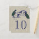 Cartão De Número Da Mesa De Casamento Russo De Burlap Linen Peacock. Esta maravilhosa design de cartas de números da mesa de casamento é perfeita para um Casamento vintage com a habilidade de personalizar com suas iniciais de monograma. Sua design única com Dois Bons Peacocks no Vintage Banner e o texto "Sr. e Sra." em uma fonte azul escura, tudo em um fundo impresso de efeito fotográfico de linen, cria um cartão de número único e na moda. Elke Clarke© Peça uma mesa com o primeiro número. Em seguida, altere o número no menu de edição e adicione a próxima placa numérica da tabela ao carrinho até que você tenha uma placa exclusiva para cada número de tabela no carrinho. Precisa de ajuda ou pretende uma combinação de cores diferente, contacte luxuryweddinginvitations@gmail.com
