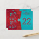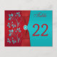Este cartão postal azul-turquesa, moderno e moderno, de lado duplo, e o cartão-postal com número de mesa floral vermelho tem uma fita vermelha IMPRESSA e um diamante IMPRESSO e um broche de joia azul-aqua que corresponde ao convite de casamento mostrado abaixo. ****É NECESSÁRIO alterar o número 22 para cada um dos números de tabela necessários, adicioná-lo ao seu carrinho e, em seguida, retornar e repetir o processo até que você tenha todas as placas numeradas individualmente necessárias no carrinho. Mantenha-o num pequeno cavalete, ou nas suas peças centrais. Se precisar de assistência, envie um email para niteowlstudio@gmail.com.