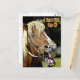 Cartão de posto de cavalo que está rindo. Frente diz "Ria Duro". O verso diz: "Faz o coração sentir-se bem!"