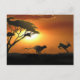 A silhueta de um guepardo perseguindo uma gazela. O pôr do sol escurece atrás deles.