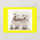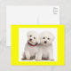 Quem consegue resistir ao rosto fofo de um cachorrinho Bichon Frise? Este cartaz encantador apresenta um retrato de dois filhotes do Bichon Frise com uma vibrante borda amarela. Estes doces cachorrinhos Bichon estão prontos para ajudá-lo a enviar saudações à família e amigos. Cartões postais são um alternativo econômico para cartões de saudação do tamanho do cheio quando você quer enviar uma nota rápida para a família e os amigos. Cartões postais de vazio são excelentes para... Notas pessoais Correspondência comercial Obrigado Notas de presentes com mensagens especiais Convites de festas Anúncios - novas Cartões salve a data de casa, casamento, graduação Alguns outros cartões de saudação de cães que você pode apreciar... com Tags: Bichon Frise, Bichon puppy, Bichon puppies, Bichon Frise puppy, Bichon frise puppies, Bichon frise p, olá, obrigado, senhorita, congatulamentos, feliz aniversário