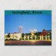 Cartão postal, foto ao anoitecer do horizonte do centro em Springfield, Illinois. O museu presidencial de Abraham Lincoln está em primeiro plano.
