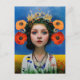 Belo cartão de Posto com um retrato original de uma garota ucraniana. Em pé com a Ucrânia