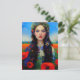 Belo cartão de Posto com um retrato original de uma garota ucraniana. Em pé com a Ucrânia