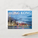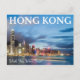 Imagem de Hong Kong com palavras "Desejo que Estiveste aqui!" em cursivo.