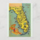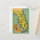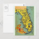Cartão postal retrorreflector/Viagens vintage. Mapa da Flórida com uma adorável dama de sol na praia! Venha para a Flórida!