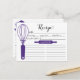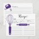 Cartões de receita da cozinha de Chá de panela contemporânea com letra de script de tipografia preta, com letra na moda, com um uísque roxo, rolando pino e mixer de mão. A frente do nosso cartão de receita oferece espaço para um título de receita, da cozinha e do espaço de ingredientes. Sacudir as instruções de exibição do cartão de receita. Visite nosso compro para convites de chá de panela correspondentes Disponíveis em nosso compro em uma grande variedade de cores populares do chá de casamento. Chá de panela perfeito para o estoque do chá de panela da cozinha.