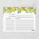 Cartão de Receita de Chá de panela Tema Citrus Lemon