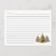 Esta é a estação para a reunião familiar e intercâmbio de receitas. Por que não pegar esse cartão de receitas de Natal elegante e juntar a receita favorita antes de esquecer! Este cartão de receitas de Natal de dois lados apresenta uma impressionante e vibrante aquarela árvores de Natal decoladas com decorações e presentes ao longo de um belo roteiro de caligrafia de "Receita", "Ingredientes" e "Direções". Você não precisa personalizá-lo — você só precisa encomendá-lo. No entanto, se quiser personalizar o cartão de receita, pode fazê-lo. Note: Os textos elegantes do roteiro de caligrafia "Receita", "Ingredientes" e "Direções", assim como a árvore de Natal de aquarelas com trabalho de arte gráfico apresentado e seus elementos junto com outros elementos como as linhas não podem ser alterados, excluídos ou movidos. Eles estão consertados.