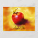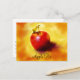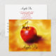 Uma pintura colorida e enriquecedora de vida morta de uma maçã solteiro contra um fundo dourado. Estes cartões contêm uma receita para a torta de maçã. Que presente fabuloso para colocar na mesa em qualquer evento, ou para incluir com um cartão de saudação, presente ou cesto de presente de fruta!