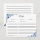 Postal cartão de receita floral azul