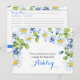 Cartão de receitas de chá de panela floral de margarida azul, amarelo, verde e branco (personalizado com o nome da noiva na frente). Este cartão de receitas de margarida azul e branca é uma boa escolha para um chá de casamento de verão ou um chá de casamento de primavera. Este cartão de chá de panela de flor branca margarida (margarida shasta ou margarida camomila) apresenta um belo buquê de aquarelas com margaridas brancas, flores azuis e folhas verdes. Este cartão de receitas de margarida azul e branca tem um aspecto de país excelente, por isso é perfeito para um chá de casamento estilo country. Outras personalizações são possíveis (fonte, cor da fonte, cores de fundo, etc.), clicando em "clicar para personalizar o link" abaixo das opções de personalização. Entre em contato com o designer se quiser que qualquer outro item correspondente vá com este design que ainda não esteja incluído na coleção.
