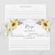 Cartão de Receita Floral Elegante De Girassol.