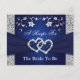 Este cartão de posto floral de cinza azul-marinho e prata para uma noiva ter uma fita IMPRESSA com um par de brilhante FAUX IMPRESSO e joia de diamante uniram-se a corações com uma borda de folha prateada FAUX que corresponde ao convite de casamento mostrado abaixo. Se você precisar de outros itens correspondentes neste design, envie seu pedido por e-mail para niteowlstudio@gmail.com.