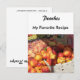 Cartão de recebimento. Imagem de pêssegos e outras frutas de pedra expostos. Título "Pêssegos" Personalize o título da receita "Minha receita favorita" uma vez e aparecerá na frente e atrás. Escreva ou cole sua receita para um prato favorito nas costas.