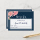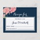 Postal de receita chic e sofisticado para noiva com peônias rosa em fundo azul-marinho. Ideal para o tema de jardim floral noturno do chá de noiva.
