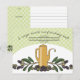 Azeite de rabisco divertido pode com ramos de oliveira e azeitonas fatiadas neste cartão de receitas de cozinhar para o seu livro de culinária ou para partilhar as suas receitas de guardiães.