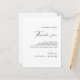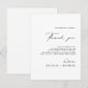 Agradeça aos seus convidados com este Cartão de Agradecimento de Recepção de Caligrafia Simples. A tipografia de roteiro clássico chique com design minimalista em preto e branco torna-o perfeito para qualquer tema de casamento. A elegante caligrafia adiciona um toque caprichoso ao cartão, tornando-o uma forma ideal de expressar sua gratidão. Você pode personalizar facilmente este cartão clicando em "Personalizar" e inserindo seus detalhes. Dê uma olhada no restante da coleção para ver todos os itens correspondentes disponíveis neste lindo design. Perfeito para uma decoração clássica de carta de convidado, este cartão certamente impressionará seus convidados.