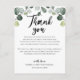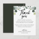 Este cartão de agradecimento de recepção com folhagem de eucalipto é perfeito para um casamento elegante. Coloque esses cartões na mesa para cada um dos seus convidados na recepção do casamento. Personalize o cartão com seus nomes e uma mensagem especial de agradecimento.