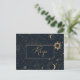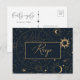 Projetado para combinar com nossa Coleção Mística Celestial, este cartão de resposta personalizável único apresenta elementos celestiais dourados lindos em um fundo azul-marinho escuro. Para personalização mais avançada deste design, por exemplo, alterar o layout, a fonte ou o tamanho do texto, clique no botão "PERSONALIZAR" acima. Por favor, entre em contato comigo para qualquer dúvida!