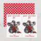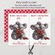 Este cartão postal de Namorados bonito foi projetado para ser facilmente cortado em duas cartas. A imagem em cada lado é de duas adoráveis cinzas coala ursos segurando um coração floral vermelho. Todo o texto é facilmente personalizado. As costas têm um padrão de corações brancos sobre um fundo vermelho. Perfeito para que os alunos elementares deem aos seus amigos na festa de Namorados da escola, e econômico também! E os professores também podem personalizá-lo para dar aos alunos.