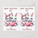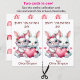Este cartão postal de Namorados bonito foi projetado para ser facilmente cortado em duas cartas. A imagem de cada lado é de dois adoráveis coelhos brancos vestidos de vestido rosa, e segurando um grande coração rosa. Todo o texto é facilmente personalizado. As costas têm um padrão de arco-íris e corações cor-de-rosa. Perfeito para que os alunos elementares deem aos seus amigos na festa de Namorados da escola, e econômico também! E os professores também podem personalizá-lo para dar aos alunos.