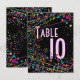 Um design colorido do néon iluminou confetes e as estrelas fazem um grande sinal para um doce temático dezesseis do clube, Quinceanera ou dance party do aniversário. Fácil personalizar cada cartão com sua mesa numera.