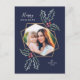 Cartão original e moderno da foto do feriado que caracteriza um quadro geométrico moderno da folha de ouro (do falso) com nossas bagas e folhas do azevinho da aguarela. Todo o texto é customizável. Adicione uma foto adicional à parte traseira e a sua mensagem feita sob encomenda.