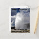 Cartão que mostra o geyser fiel velho da água do tiro do parque nacional de Yellowstone no ar.