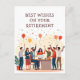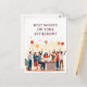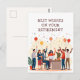 Celebrar a aposentadoria de um colega com este cartão de despedida personalizado com uma ilustração encantadora de colegas de trabalho a despedir-se. O design inclui o texto editável "Melhores Desejos na Reforma", que pode ser personalizado com o nome do aposentado ou a mensagem pessoal. Perfeito para despedidas no escritório, celebrações no local de trabalho e festas de aposentadoria, esta carta única combina calor, humor e estilo profissional para tornar seu envio extra especial.