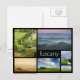 Cartão de várias paisagens com ciprestes e casas de campo no vale do d'Orcia de Val em Toscânia em uma colagem com um quadro preto e o texto: "Toscânia".