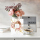 Salve a data do cartão postal com um buquê de champanhe chamado rosa de cor rosa-pincel, castanho-chocolate, bege e bronzeado. Ouro azul gravado folhagem e outros detalhes acentuados. Por favor, note: os detalhes gravados em ouro neste cartão postal são a imitação em ouro. Não a folhagem dourada.