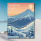 Montanhas nevadas de Chamonix, França, na Europa! Esperamos que esteja tendo umas ótimas férias de esqui. Este cartão-postal apresenta uma linda paisagem de montanha de cinzas azuis em frente ao céu laranja amarelo. Todas as frases de texto podem ser personalizadas para você!
