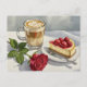 Cheesecake de Café com Leite com Morango Rosa Vermelho Cartão Postal para Postcrossing
